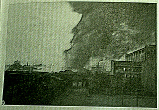 Характер и размеры поражения и разрушения - 70 зажигательных бомб. Возникло 6 пожаров. От огня пострадал верхний этаж жилого барака. Пострадало 2 человека.