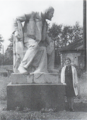 Мария Григорьевна Масловская у памятника В.И. Ленину на территории института, 1948 год