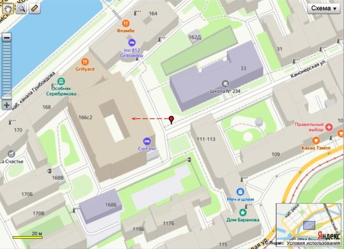 2014: Courtyard by Marriott Pushkin, отель - наб. кан. Грибоедова, 166, 1 этаж тел. (812) 610-50-00 courtyardstpetersburgpushkin.ru Онегин, бар - наб. кан. Грибоедова, 166, 1 этаж тел. (812) 610-50-00 Ежедневно с 11:00 до 23:00 Bierstube, ресторан - наб. кан. Грибоедова, 166, 1 этаж тел. (812) 610-50-00, (812) 291-30-80 www bier-stube.ru Ежедневно с 12:00 до 01:00 (2GIS, апрель 2014) 2016, 2018: Courtyard by Marriott Pushkin, отель - наб. кан. Грибоедова, 166, 1 этаж Онегин, бар - наб. кан. Грибоедова, 166, 1 этаж Bierstube, ресторан - наб. кан. Грибоедова, 166, 1 этаж Ежедневно с 12:00 до 03:00 Магазин сувениров и ювелирных изделий - наб. кан. Грибоедова, 166, 1 этаж (2GIS, октябрь 2016) (2GIS, январь 2018) 2020: Courtyard by Marriott St. Petersburg Center West Pushkin, отель, ООО Отель управление - наб. кан. Грибоедова, 166, 1-7 этаж www marriott.com/ledgr Онегин, ресторан-бар - наб. кан. Грибоедова, 166, 1 этаж Bierstube, ресторан-бар - наб. кан. Грибоедова, 166, 1 этаж Ежедневно с 12:00 до 01:00 Магазин сувениров и ювелирных изделий - наб. кан. Грибоедова, 166, 1 этаж (2GIS, январь 2020) 2020: Courtyard by Marriott St. Petersburg Center Hotel, отель - наб. кан. Грибоедова, 166, 1-7 этаж тел. +7 (812) 610-50-00 www marriott.com/ledgr Онегин, ресторан-бар - наб. кан. Грибоедова, 166, 1 этаж Ежедневно с 12:00 до 23:00 Herita`ge, магазин сувениров и ювелирных изделий - наб. кан. Грибоедова, 166, 1 этаж (2GIS, декабрь 2020) Дорогие друзья! Сообщаем, что на данный момент ресторан «Bierstube» закрыт, но это не навсегда! сюрпризов! Кстати, напоминаем, что наше превосходное пиво доступно к заказу и навынос в ресторане «Онегин» (vk.com/grillyardspb, 11.08.2020) Скоро открытие нового ресторана « 2021: Courtyard by Marriott St. Petersburg Center Hotel, отель - наб. кан. Грибоедова, 166, 1-7 этаж Herita`ge, магазин сувениров и ювелирных изделий - наб. кан. Грибоедова, 166, 1 этаж (2GIS, сенябрь 2021) 2022: Courtyard by Marriott St. Petersburg Center Hotel, отель - наб. кан. Грибоедова, 166, 1-7 этаж тел. +7 (812) 610-50-00 courtyart.ru Herita`ge, магазин сувениров и ювелирных изделий - наб. кан. Грибоедова, 166, 1 этаж Американская торговая палата в России, представительство в г. Санкт-Петербурге - наб. кан. Грибоедова, 166, 1 этаж тел. +7 (812) 448-16-46 spb.amcham.ru (2GIS, ноябрь 2022) (добавил