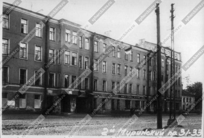 1904, 1909: Табачные магазины. Бахвалов Лаврентий Петрович - Лесн. уч., Муринский, 33-35 (ВПб на 1904 г. О. II. C. 1345; на 1909 г. О. II. C. 1383) (относится к соседнему участку у Круглого пруда) 1914: Пиво и мед. Кузнецов Дмитрий Степанович - Лесн. уч., Институтский 8-30 (ВПб на 1914 г. О. II. С. 1389) (относится к участку угол Пархоменко - Институтский) 1910: в булочных нет 1911: Булочные. Домогаров Лев Аркадьевич - Лесн. уч., Муринский, 29-31 (ВПб на 1911 г. О. II. С. 1267) 1912: в мясных нет Булочные. Формины Алексей и Павел Савельевич - Лесн. уч. Выборгск. шоссе 2; Муринский 29-31 (ВПб на 1912 г. О. II. С. 1308) 1913: Мясные лавки. Зимин Федор Алексеевич - Никольск. рын. 51; Лесн. уч. Муринский 29-31 (ВПб на 1913 г. О. II. С. 1252) Булочные. Формины Алексей и Павел Савельевич - Лесн. уч. Выборгск. шоссе 2; Муринский 29-31 (ВПб на 1913 г. О. II. С. 1145) 1914: Мясные лавки. Николаев Иван Михайлович - Лесн. уч. Муринский 29-31 (ВПб на 1914 г. О. II. С. 1343) Булочные. Ежилов Василий Иванович - Б. Сампсониевский, 33, 41 и 35; Лесн. уч. Муринский 29-31; Нейшлотский пер. 13 (ВПб на 1914 г. О. II. С. 1220) 1915, 1916, 1917: Мясные лавки. Туляков Николай Дмитриевич - 1 Муринский 7а-11в; Лесн. уч. Муринский 31-33 (ВПг на 1915 г. О. II. С. 1251; на 1916 г. О. II. С. 1310), (ВПг на 1917 г. О. II. С. 1400) Булочные. Ежилов Василий Иванович - Б. Сампсониевский, 33 и 35; Нейшлотский пер. 13; Лесн. уч. Муринский 31-33 (ВПг на 1915 г. О. II. С. 1130; на 1916 г. О. II. С. 1184) 1917: Булочные. Ежиловы Василий и Николай Иванович - Б. Сампсониевский, 33, 35 и 41; Лесн. уч. Муринский 31-33 (ВПг на 1917 г. О. II. С. 1263) 1922: Лесной родильный приют - Лесной, 2 Муринский, 31/33. Вр. Лукашев ([]. Ст. 521) Пункты охраны материнства и младенчества. Выборгский - Лесной, Муринский, 31/33, кв. 14. Вр. Зотов ([]. Ст. 523) 1922: 33-й милицейский уч. - 2-й Муринск. пр., 31/33 (Весь Петроград на 1922 год. Стб. 747) 1925, 1929, 1935, 1947: 19-е отделение милиции - 2-й Муринский пр., 31/33 (Абоненты ЛГТС. 1925. С. 76) (Весь Ленинград и Ленинградская область на 1929 год. С. 145) (Весь Ленинград. 1935. С. 29) (Список абонентов ЛГТС. 1947. С. 220) 1927: Пункт охраны материнства и младенчества № 11 Лесной - 2-й Муринский пр., 31/33 (штат: заведующий, врачи: гинеколог, венеролог, 2 педиатра, завхоз, бухгалтер) Основные функции [пунктов]: консультация для беременных, для грудных и малых детей (до 3-х лет), санитарно- профилактическая работа среди матерей и беременных по подготовке к материнству, социально-правовая помощь одиноким и безработным матерям, питание детей (ВЛ на 1927. С. 112) 1931: Продуктовый магазин кооп. "Выборгский рабочий" - Муринский 2-й, 31/33 (Весь Ленинград. 1931. О. II. С. 446) 1932: Здравобъединение им. Фридриха Энгельса. Пункт охраны матмлада № 11 - 2-ой Муринский, 31/33 (Весь Ленинград. 1932. С. 97) 1935: Выборгское районное потребительское общество, продуктовые магазины, № 104 - Муринский 2-й пр., 31/33 (Весь Ленинград на 1935 г. С. 241) 1968, 1970, 1973: 19-е отделение милиции Выборгского района - 2-й Муринский пр., 31/33 (Ленинград. Краткая адресно-справочная книга. 1968. С. 32), ([]. С. 177), ([]. С.33) 1988, 1990: Отделение милиции № 19 Выборгского района - пр. Шверника, 31/33 ([]. С. 282), (Краткий телефонный справочник. ЛГТС. 1991. С. 284) 1994, 1996: Отделение милиции № 19 Выборгского района - 2 Муринский пр., 31 (Весь Петербург-1994. С. 264), (Весь Петербург-1996. С. 215) 1996, 1998, 2001, 2002, 2003, 2005: Паспортный стол отдела милиции № 19 Выборгского РУВД - 2-й Муринский пр., 31 (Весь Петербург-1996. С. 215), (Весь Петербург-1998. С. Б-130), (TopPlan 2001), (Весь Петербург-2002. С. Б-241), (Весь Петербург - 2003. С. Б-312), ("Желтые страницы. Весь Петербург + Северо-Запад" - 2005) 1998: ОПОП № 5 - 2-й Муринский пр., 31/33 ОПОП № 12 - 2-й Муринский пр., 31/33 (Вес