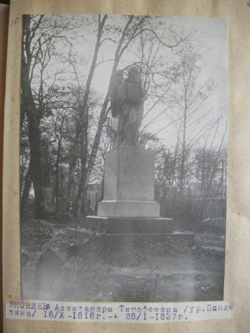 В "Исторических кладбищах..." (№76 в нашей библиографии) этого нет. У меня остался небольшой буклет музей "Литераторские мостки" советского времени - там тоже нет упоминаний.