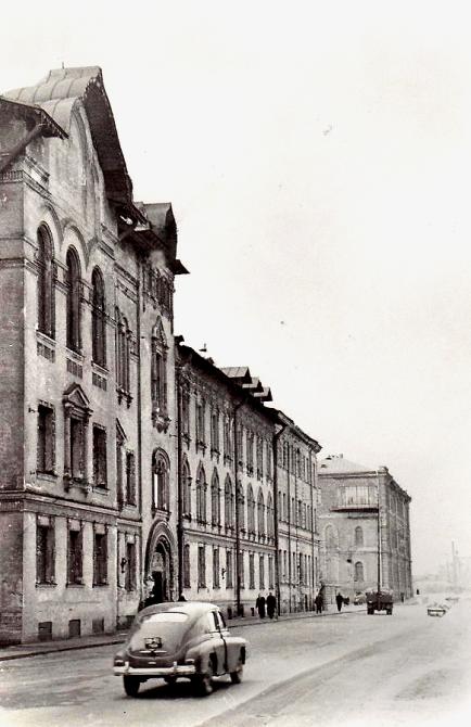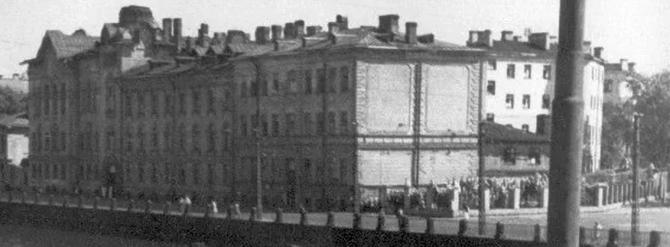 На фото подпись, что это здание общежитие сестер милосердия. В архиве мне попадалось упоминание, что по этому адресу до войны было общежитие моряков. Могу только предположить, что в советский период тут уже была больница. Уже на моей памяти в 1970-х и сколько-то позже здесь была поликлиника водников и больница одновременно. Где и как размещались не знаю - детей водников обслуживали на Васильевском острове. Позднее (когда? но в начале 1990-х уже было) построили здание для поликлиники на ул. Циолковского. А тут оставалась только больница.