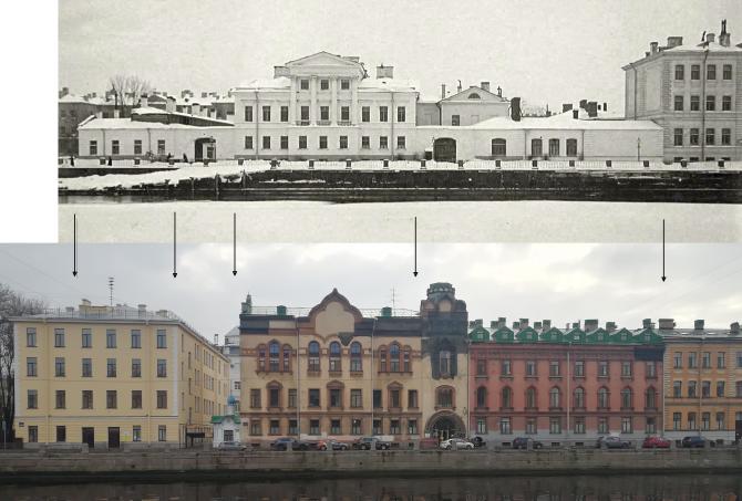 (Показан каменный дом по Фонтанке 153.)