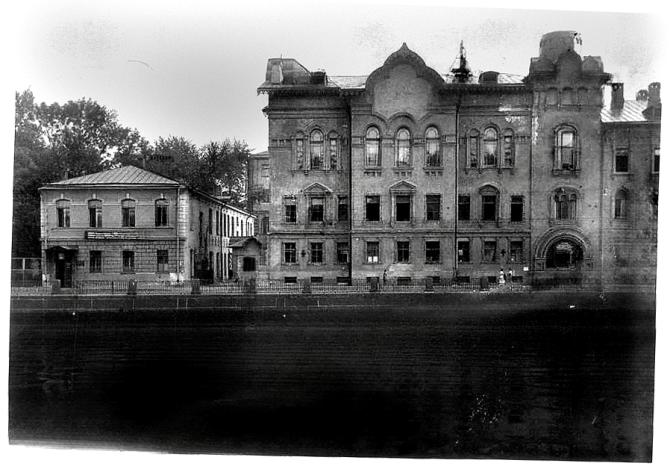 И дом справа показался стоящим по красной линии, а это снесенная часть дома 156. Но 3-этажное здание слева это все же не особняк Жербина-Доста, а здание, построенное уже Общиной.