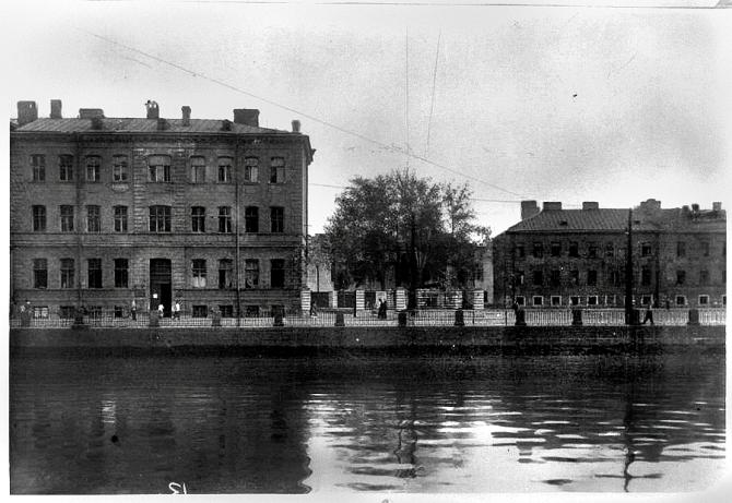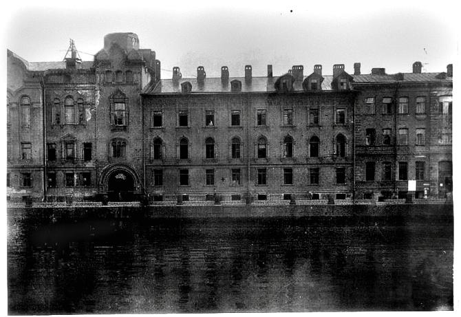 Архивный шифр: Дата съёмки: 1927 г. Цветность: Черно-белый Аннотация: Внешний вид здания общежития инвалидов труда имени Чудновского на набережная реки Фонтанки дом №154. Места съёмки: Ленинград Автор съёмки: Магазинер Семен Абрамович