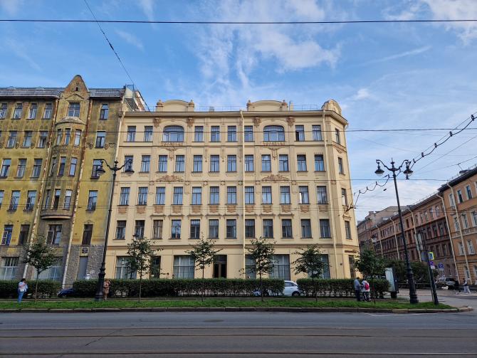 Дом построен в середине XIX в., надстроен в 1904 г. с элементами модерна на фасаде по проекту арх. Александра Ширшова. Совет обратил внимание, что этот дом вместе с двумя следующими за ним по Загородному пр. образуют важный градостроительный ансамбль эпохи модерна. В 1906 г. в здании открылись Женские политехнические курсы – первое в России высшее техническое учебное заведение для женщин.