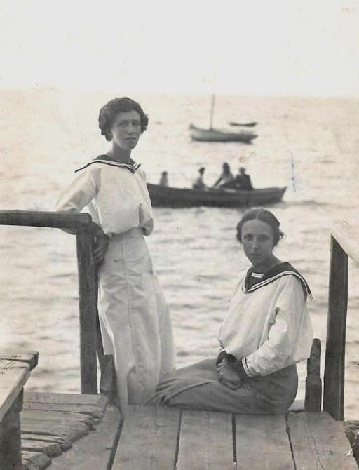 Моя бабушка Любовь Молчанова училась в этой гимназии. На фото она в списках на 1910 год. После окончания работала учителем русского и литературы. В 1926 родилась моя мама Вера Молчанова и тоже здесь училась до 1941 года. Они жили около школы в учительском доме. В дом попала бомба. А бабушку и маму немцы угнали в Германию. Они шли пешком, почти без вещей сначала к станции Вруда, жили в Молосковицах, потом, через Литву, в Германию. Но это совсем другая история. А про школу мама много вспоминала. Они с бабушкой часто гуляли по паркам с преподавателем французского Леони Карловной Мартенс. Маме было очень скучно, т. к. разговаривали исключительно на французском. В классе у мамы ещё училась девочка-красавица Ляля Жгун. На 100-летие смерти Пушкина в школе устроили бал-маскарад. Все были одеты в костюмы пушкинских героев. Мамина двоюродная сестра Леля была русалкой, а мама маленькой русалочкой в длинной рубашке, с лилиями в волосах. И ещё очень много воспоминаний.