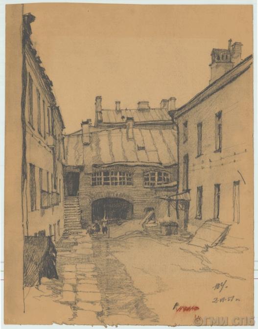 "Чертежи дома и каменной галереи купца 2-й гильдии Милиотти по 1-й Линии Васильвеского острова № 8 и Соловьевскому переулку № 7 с указанием предшествующих владельцев ( купец 1-й гильдии Блинов Н. С., действительный статский советник Лесников И. П.) Фасады, разрезы, поэтажные планы. Архитекторы Леман К., Гешвенд А. Р., Мельников, Захаров М. З." (1838-1876 гг.) (ЦГИА Санкт-Петербурга. ф.513. оп.102. д.1461. 24л.; добавил: )