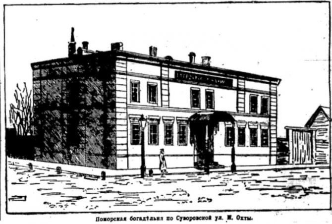 * Дом на втором плане. На переднем плане момент сноса бывшей Поморской богадельни. Скриншот из х/ф «Дела давно минувших дней…» (1972)