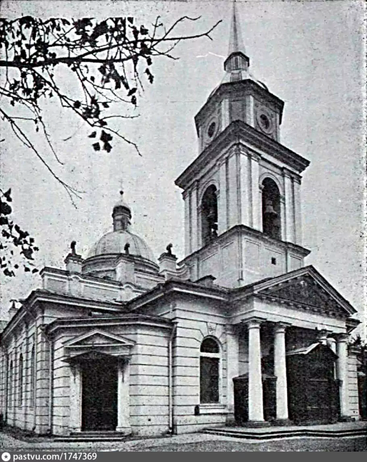 Церковь построена в 1798-1803 гг. по проекту арх. И. Е. Старова, руководил строительством арх. В. П. Петров - зять Старова.