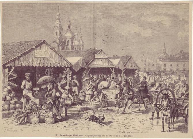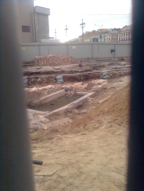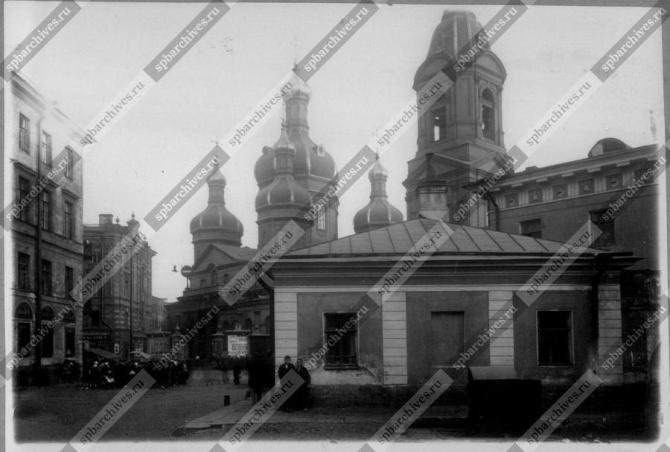 … продолжалось дело о построении Спасосенновской церкви. 18-го июня 1751 г. купцы подали прошение преосвящ. архиепископу Сильвестру о разрешении им построить на Сенной площади церковь в честь Сретения Господня, с приделами трех вселенских святителей - и равноапостольного князя Владимира. 18 января, 1752 г. С. Петербургский купец и главного магистрата конторы рацгер Иван Матееев, сын Гроздов, донес его преосвященству, что 11 декабря, 1751 г. её императорское величество, чрез генерал-лейтенанта, генерал полицмейстера Алексия Даниловича Татищева, указать соизволила, «чтобы тое церковь на том месте построить», и оной именной её императорского величества указ в главной полицмейстерской канцелярии записан. После переписки купцам разрешено, «на показанном месте выстроить каменную церковь во имя Сретенья Господня с приделами трех святителей и князя Владимира. Но пока собирали деньги и материалы на постройку церкви, купцы, с разрешения архиепископа, купили на Выборгской стороне, близ компанейских дворов, деревянную церковь происхождения честных древ животворящего Креста Христова. Эта деревянная церковь и освящена была 18 июля 1753 г. Того же числа преосвященный Сильвестр совершил и закладку каменной церкви. («Историко-статистические сведения о С.-Петербургской епархии». Выпуск 6СПб, 1878 г. в типографии Департамента Уделов С. 13-14)