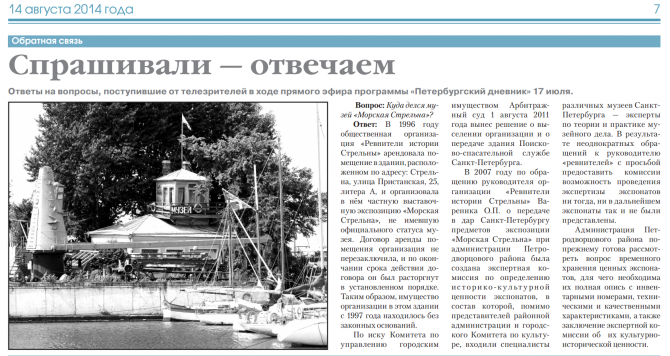 Музей выкинули из здания спасательной станции четыре года назад, экспонаты 30 октября 2013 года судебные приставы отправили в морской контейнер на терр. яхт-клуба.