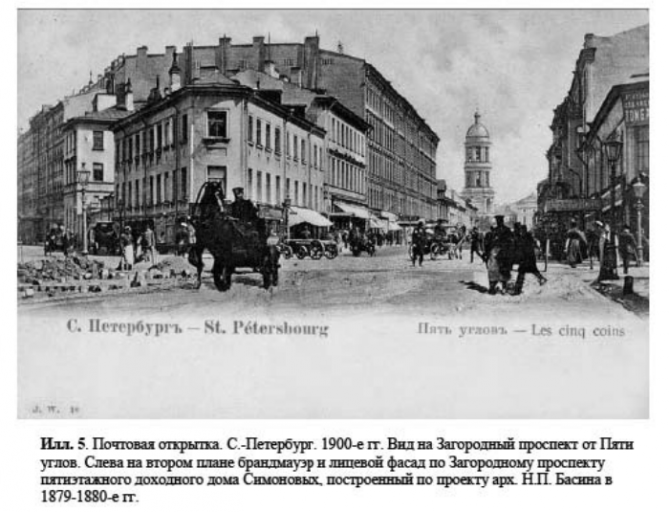 Доходный дом П. В. Симонова эклектика ([], с. 974) ул. Рубинштейна, 38 - Загородный пр., 9 1879-1880 - арх. Басин Николай Петрович ([]. C...)