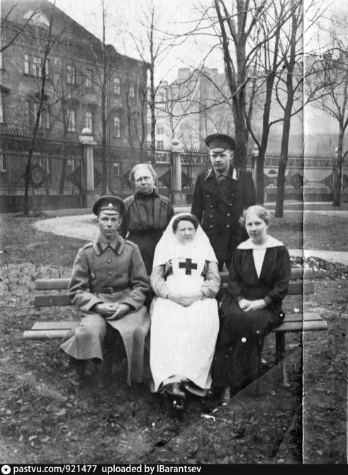 "В 1894 г., садовник К. К. Ремпен получил высочайшее разрешение на аренду участка в садике Воспитательного дома "под выстройку здесь оранжереи (не магазина) с отступом от улицы". В том же году на территории сквера по проекту арх. С. А. Поленова возвели фотографический павильон Левицкого. Павильон был построен одноэтажным со входом на уровне земли. В последующие годы, по сведениям Лукомского, в сквере появились табачная лавка, сеновалы, собачьи будки, сараи. Фотограф Левицкий вместо павильона воздвиг 2-х этажный (каменный с антресолями) дом, а Ремпен и сын пристроили к своей оранжерее каменный магазин"