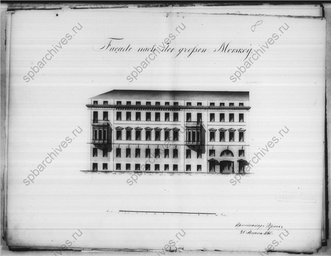 2. Чертежи дома Л. Штрауха в 1-й Адмир.ч. 2-го квартала по Большой Морской ул., и Гороховой ул.,114/24 и 11 (Морской ул.,23 и Гороховой ул.,12) Крайние даты документов: 26.08.1865. Количество листов: 14