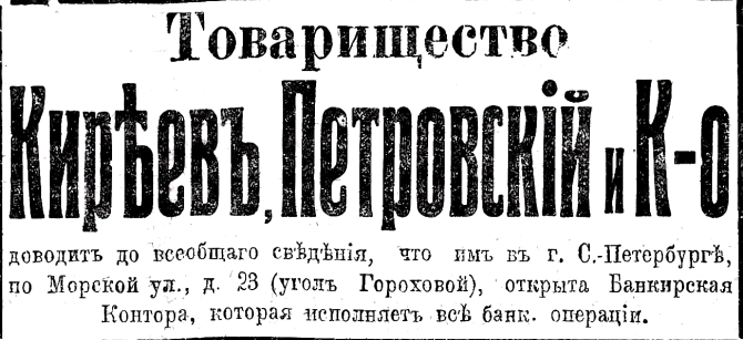 "Адресная книга" Яблонского на 1896 г. приводит нам следующий список арендаторов по дому 23-12 по Б. Морской улице (см. ): - Шольц Осип Ив. Перчаточный магазин, - Гибнер Юлия Ив. Сапожный магазин, - Готш Иосиф. Модный магазин, - Фролова Анна Александровна. Магазин мод, - "Кадиш". Магазин галстуков. Влад. Шмитген Юлия Ив., - Иванов Александр Никол. Парикмахерская, - Барышева Прасковья Александровна. Модный магазин (О. I. Стб. 503). Что касается последней дамы, о ней есть вот что: "Шушина". Платье дамское и детское. Б. Морская, 23. Влад. Барышева Праск. Алдр. (О. III. С. 667). Справа виден краешек дома с каннелированными пилястрами () и фрагменты вывесок магазина швейных машин и велосипедов "Ж. Блок" (Адр. кн. на 1896. О. III. Стб. 502). (добавил )