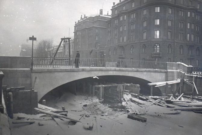 В 1930 г. из-за разрушения каменной кладки и гранитной облицовки в подводной части быков, а также прилегающей к мосту стенки гранитной набережной было решено перестроить мост. В 1931-1932 гг. по проекту инженера проектного отдела Треста по эксплуатации мостов и набережных Ф.К. Кузнецова и архитектора К.М. Дмитриева мост был перестроен в однопролётный железобетонный арочный. Пролётное строение представляет собой бесшарнирную арку, а по конструкции - простой железобетонный свод. Устои железобетонные, облицованы гранитом, на свайном основании. Изменён характер ограждения: перила металлические простого рисунка без тумб. Длина моста 30.2 метра, ширина 16 метров. После реконструкции мост утратил свой исторический облик. Строительством руководили инженер П. П. Степнов и П. А. Жуков. В 1980 году произведён капитальный ремонт моста: заменён железобетонный поребрик на гранитный (высотой 40 см), окрашены фасады пролётных строений и перильное ограждение, отпескоструена гранитная облицовка устоев и частично заменена гидроизоляция. (, дата обращения - 22.07.2017)