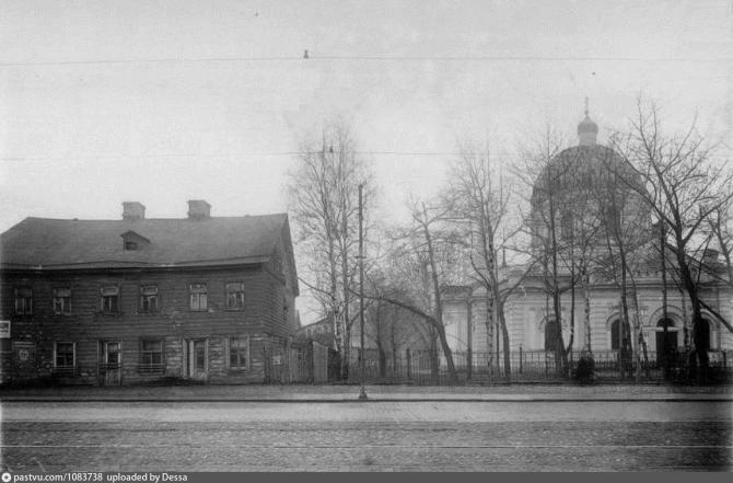 С 1865 г. на участке между современными ул. Ольминского и пер. Ногина стоял храм села Смоленского - церковь Смоленской иконы Божией Матери. Вначале церковь была деревянной.