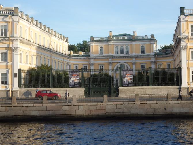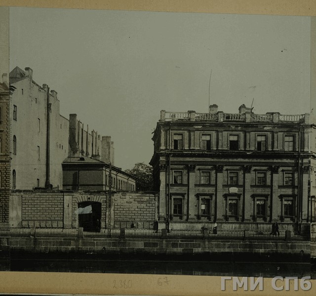 *  Вид с набережной Фонтанки на ограду с воротами дома поэта Г.Р. Державина по набережной реки Фонтанки, 118.