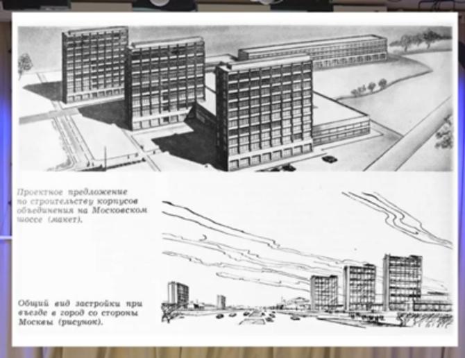 Узнала из лекции Открытого города, что по проекту должно было быть три корпуса (лектор Макелова А. В., стопкадр из видео ~00:02:30):