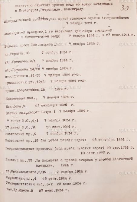 Футшток у Горного института состоит из трёх водомерных реек. Две первые установлены . При наводнении 1924 г. футшток оказался недоступен для замера, а мареограф был затоплен, высота воды на уровнемерном посту была оценена после наводнения. После этого на здании около гидрологического поста установили третью часть (см. ) с аббревиатурой «ГУГМС». Главное управление гидрометеорологической службы при СНК СССР было создано в 1936 г.