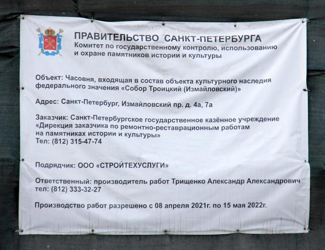 Федеральный памятник Собор Троицкий (Измайловский) Часовня 1894, гражд.инж. Кондратьев С.П. Измайловский проспект, дом 4а, литера А Постановление Правительства РФ № 527 от 10.07.2001