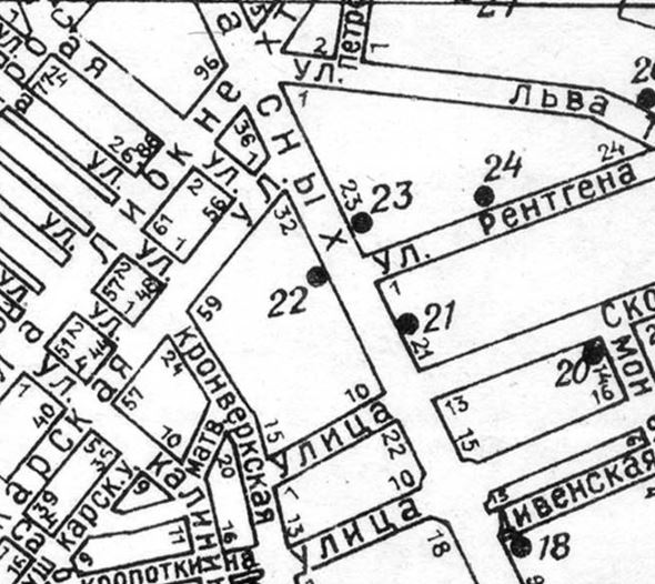 Хорош дом № 25, хорош… Аж три фасада: в сквер выходящий, на Каменноосторвский, и на улицу Рентгена, бывшую Лицейскую… Осторожнее надо со словом этим - «бывший» - обращаться. Уточнять приходится – когда бывший? В 52-м, например улица Рентгена так и была – Рентгена. И в бурю переименований 90-х годов устояла и своего дореволюционного имени не получила… Кстати, в работе над проектом дома № 25 на уровне соавторства принимал участие К.А.Гербер. Интересно, что дед ничего никогда мне про него не рассказывал. Или, может, я забыл. Во всяком случае, пока, на данный момент, мне ничего не известно об архитекторе (или строительном инженере) Гербере…