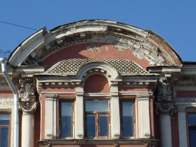 ("Здание Почтового стана перестраивалось трижды. Из 60 барельефов, установленных изначально, сохранилось лишь две львиные маски «с полотенцами» на фасаде портиков". Архитектурные обмеры: Главпочтамт)