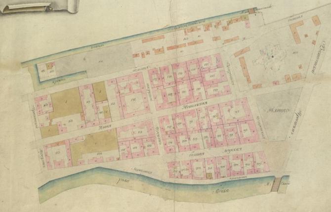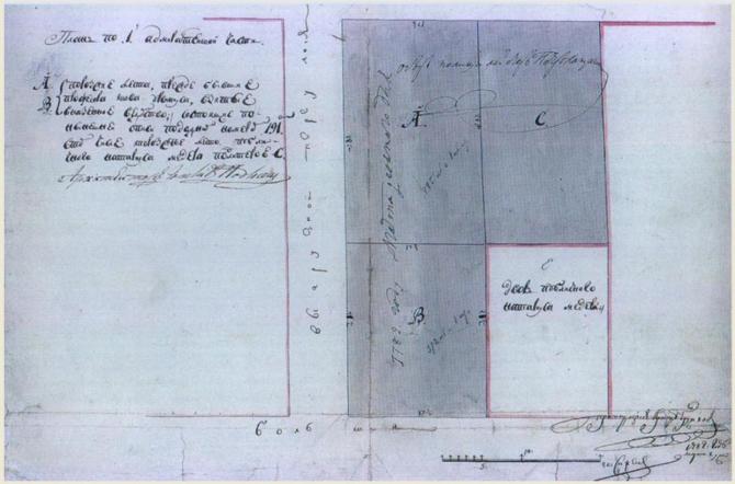 План участков профессора Урсиниуса и нотариуса Медера, предназначенных для строительства Почтового Стана. stamps.ru/blog/iz-istorii-zdaniy-sankt-peterburgskogo-pochtamta