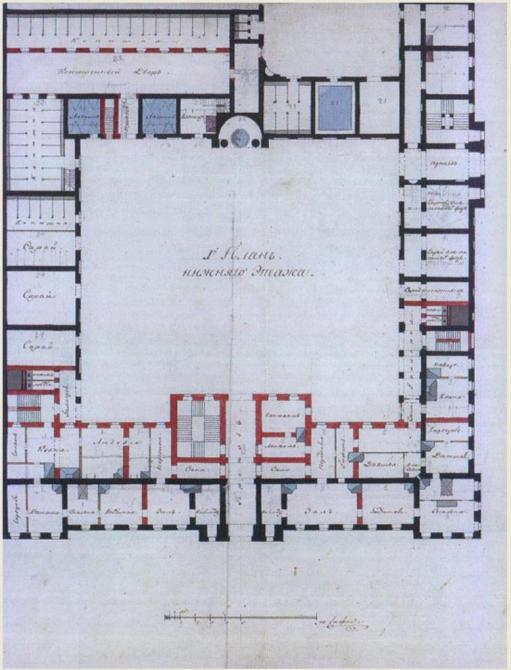 Соколов Е. 1801 План нижнего этажа Почтового Стана (часть). stamps.ru/blog/iz-istorii-zdaniy-sankt-peterburgskogo-pochtamta