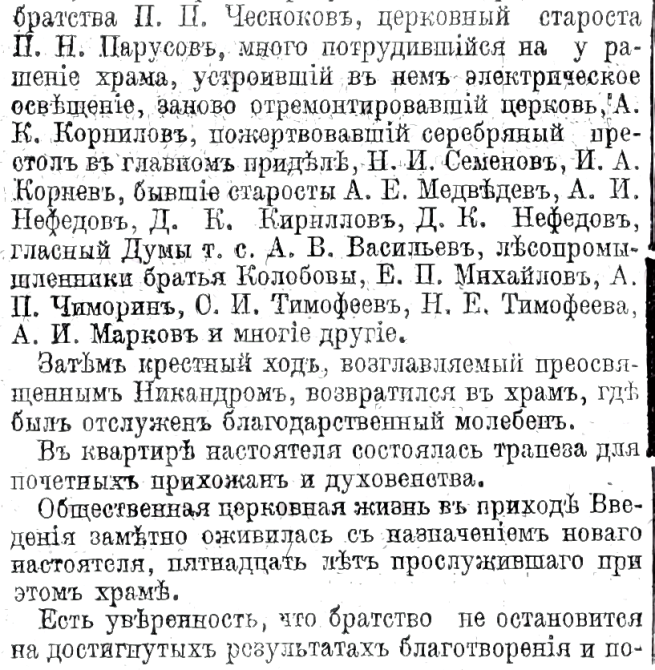 Б. Белозерская, 8 - ЧеСНокова Петра Павловича (ВПг на 1917. О. 4. Стб. 40). В алфавитной части его нет. Чесноков Петр Павлович, пот. поч. гр., купец. Саблинская, 13-15. Староста церкви при Доме трудолюбия Петровского об-ва (ВПб на 1911. О. 3. С. 973). В купеческих книгах за разные годы не нашла его. ()