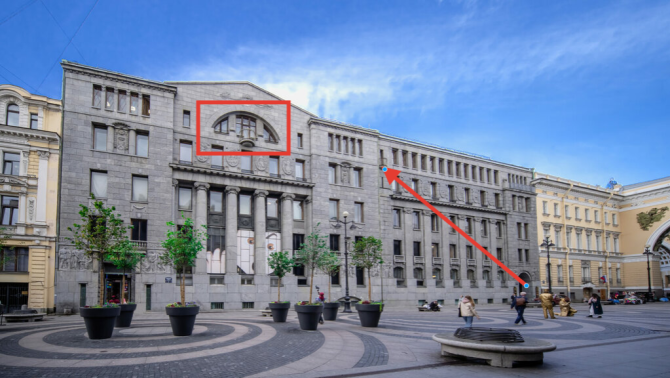1923, 1924: Управление уполномоченного народного комиссариата иностранных дел — ул. Герцена (б. Морская), 3/5 (ВПг на 1923 год. О. II. С. 15, ВЛг на 1924 год. С. 41)