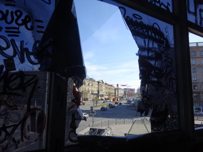 * Общий вид дома № 62/21, подготовленного к сносу, на углу Лесного пр. и Кантемировской ул. (Архитектор А.И. Ковшаров, 1902 г. Дом снесен в конце 1986 г.). Автор съемки: Овчинников Кирилл Владимирович. ** Вид 2-х ярусного эркера центральной части фасада двухэтажного дома № 62/21, подготовленного к сносу, на углу Лесного пр. и Кантемировской ул.). Автор съемки: Овчинников Кирилл Владимирович.