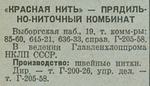 (Просто в публикации указано 1946 Пряд.-Нит.Комбинат "Красная Нить")