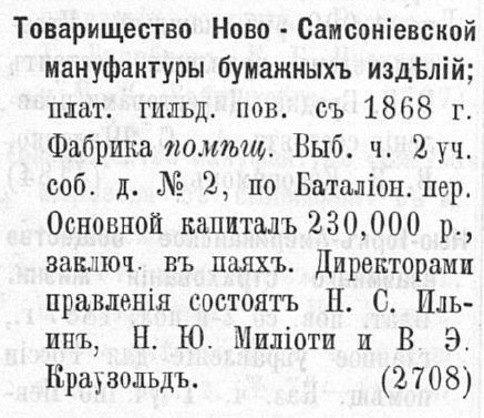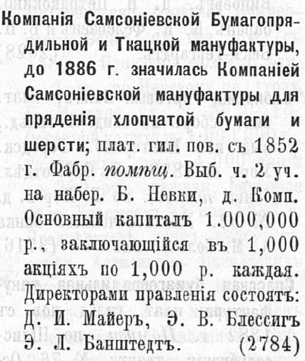 В 1861 г. мануфактура была продана англо-немецкой компании "Мейер и Прэн", которая превратила предприятие в бумагопрядильную и ткацкую фабрику.