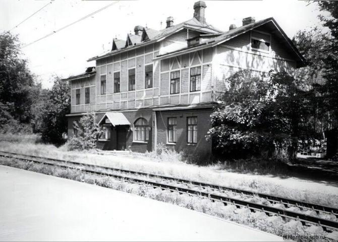 Здесь же были и служебные постройки, обозначенные на генплане проекта. Здание сгорело в 1993 г., но авторский проект фасадов, генплан архитектора Бруно Грангольма, инвентаризационные планы и фотографии дают возможность воссоздания вокзала в полном объеме, так как он был построен без отступлений от разработанного архитектором проекта (Свешникова В.Н. Линия Рихимяки - Санкт-Петербург Финляндской жклкзной дороги (от Санкт-Петербурга до Белоострова). Памятники истории и культуры Санкт-Петербурга. 1994. С.31-48 добавил )