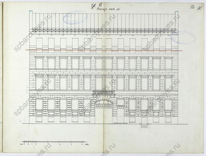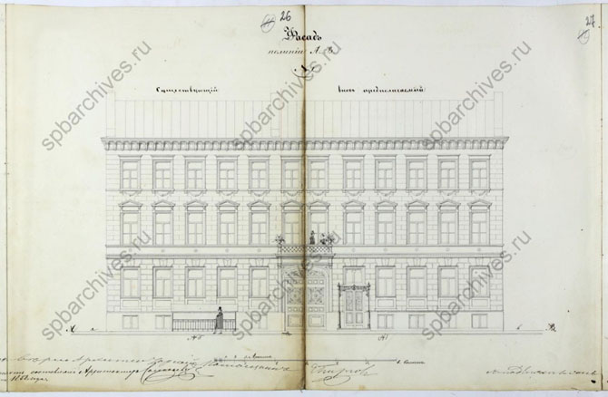 на строительство: СПб Городская Управа 18 июня 1883 г. постановила постройку каменного четырехэтажного на нежилых подвалах лицевого дома лит. А (см. ) и в связи с ним такового же четырехэтажного на нежилых подвалах надворного флигеля лит. В...