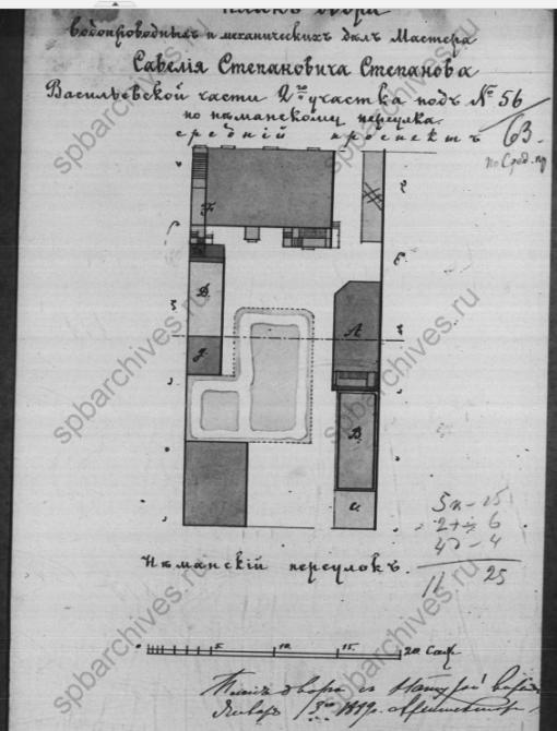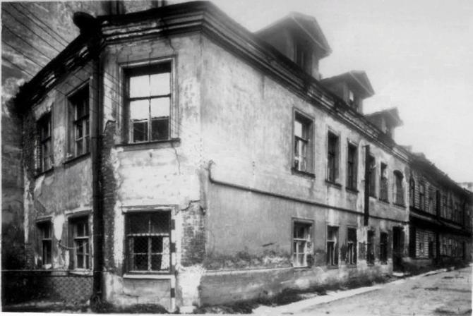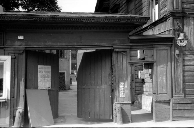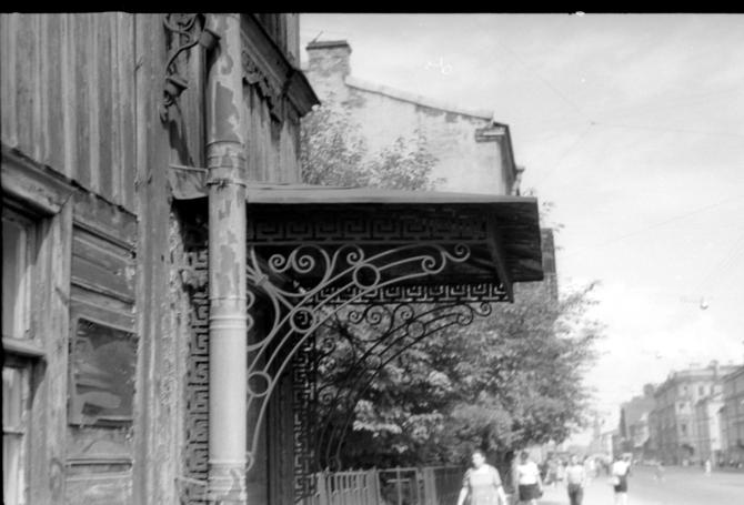 ...Из обширного владения образовались и три других участка - № 61, 63 и 65. На первом из них деревянные строения были разобраны в первой половине XX в. На образовавшемся пустыре разбили небольшой сквер. Рядом сохранялся деревянный, в два этажа, с мезонином, дом № 63, построенный во второй трети XIX в. С 1880-х по 1900-е гг. он принадлежал купцу С. С. Степанову, затем купеческой семье Заварзиных. Здесь находилась слесарно-кузнечная мастерская. Деревянный дом № 63 снесли на рубеже 1960-1970-х годов. Новое шестиэтажное жилое здание заняло все пространство от № 59 до №65. В первом этаже разместился специализированный книжный магазин «Недра»... ([109]. С.388 , ([59]. С.568; добавил: )