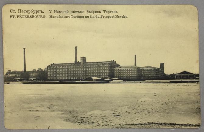 К Неве обращен главный фасад самой поздней постройки - так называемой Второй прядильной фабрики. Она была сооружена в 1895 году по проекту архитектора Л. Л. Петерсона. Живописное завершение, богатая пластика стены, насыщенной кирпичным декором, разнообразные по величине и очертанию оконные проемы, использование в декоративных целях металлических элементов (ограждение наружных пожарных лестниц, парапеты, кронштейны) - все придает этому зданию выразительность и свидетельствует о влиянии архитектурно-художественных принципов модерна. Здание доминирует в застройке комплекса и в невской панораме. (добавил )