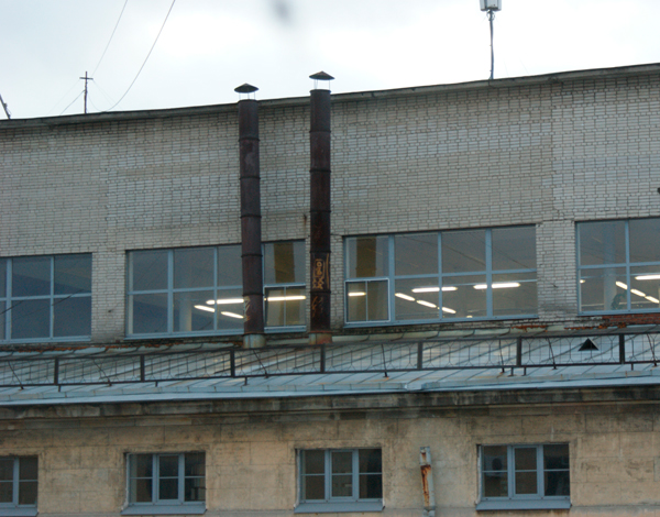 Марфельд выполнил проект в неоклассическом духе, с колонадой коринфского ордера на главном фасаде, однако при завершении строительства в 1920-х гг. арх. Я. Я. Кетчером это сооружение получило более строгий облик, близкий к конструктивизму. ()