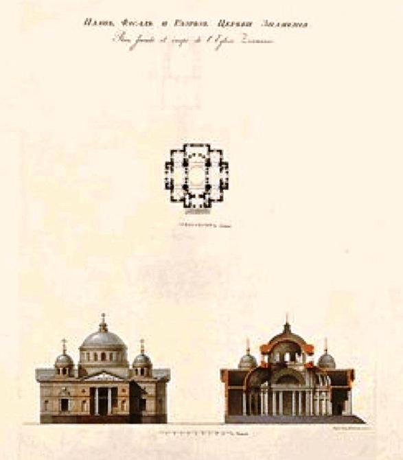 Здание было увенчано пятью шлемообразными куполами, средний из которых несколько выше и шире. Фасады рустованы, входы оформлены ионическими колоннами. Демерцов увеличил боковые купола почти до размеров главного. Внутри церкви пространство под куполами охватывала легкая колоннада коринфского ордера, выделяя средний неф.