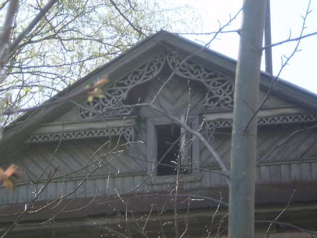 1953 - Год постройки указан согласно ЕИСТ. Со слов местных жителей, дача построена для генерала, принадлежала (и, возможно, до сих пор (2012) принадлежит) государству, заброшена в начале 1990-х гг. Резьба в верхней части одинаковая со всех четырех сторон. Снесена в конце 2023 или в начале 2024 года.