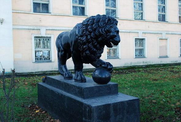 "У целого ряда своих зданий Росси ставил флорентийских львов, в частности у Пролетарского (б. Александровского) завода они поставлены как основа ограды, соединенные цепями"