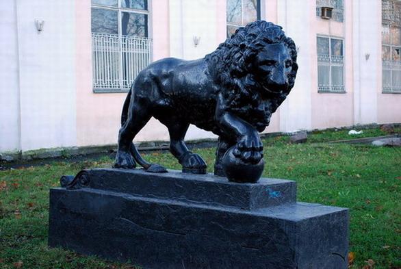 Львы покрашены толстым слоем битумной краски и производят очень грустное впечатление.