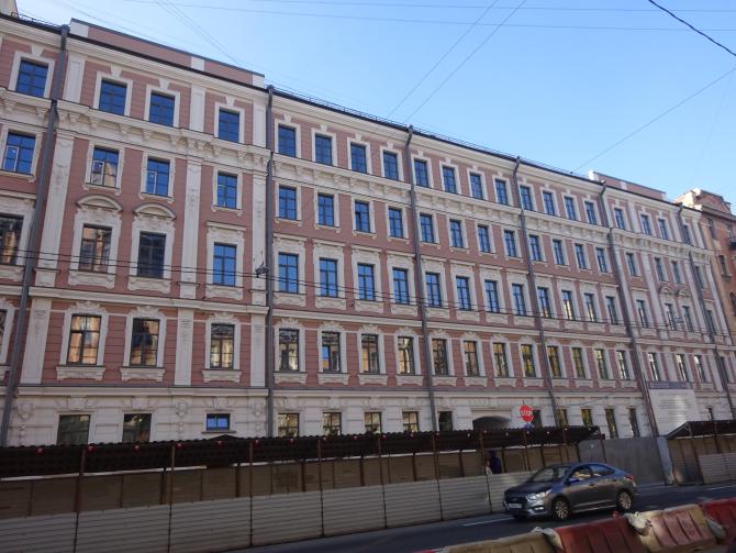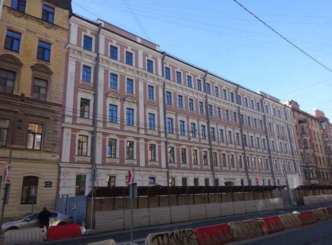 Участок № 46 с 1860-х гг. и до революции принадлежал причту Смоленской кладбищенской церкви. В 1875 г. арх. К. Н. Вербицкий взамен деревянных построек возвел четырехэтажный доходный дом, позднее надстроенный пятым этажом. Третий этаж здания до 1918 г. занимали Частная гимназия и реальное училище Г. А. Видемана. Тут же была и квартира их директора - известного историка литературы П. А. Висковатова. ([59]. С. 351.)