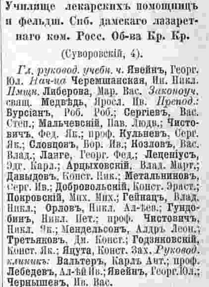 Училище называлось: Училище лекарских помощниц и фельдшериц, а не наоборот. Ну, и дальше там уточнения о принадлежности на 1908 год.