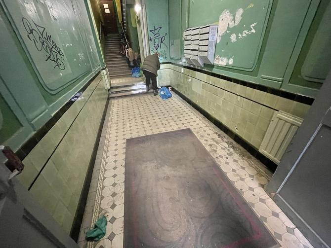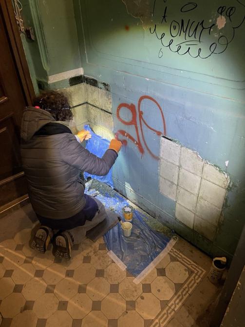 Следующим владельцем стал крестьянин и подрядчик лепных и строительных работ, а затем потомственный почетный гражданин А.А.Никольский, владевший соседним домом N 80. Для него в 1910 г. по проекту архитектора А.Ф.Барановского возвели пятиэтажный с мансардами дом, походящий на соседний, поэтажными членениями и формой эркеров. Для отличия портал дома N 82 получил облицовку из блоков серого гранита. Центр фасада выделен порталом, лепными барельефами над окнами второго и третьего этажей, а также вставками зеленой керамической плитки. По краям эркеров - вставки из светлой плитки. Дома имеют единый двор.