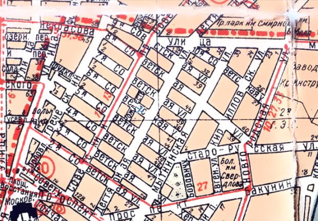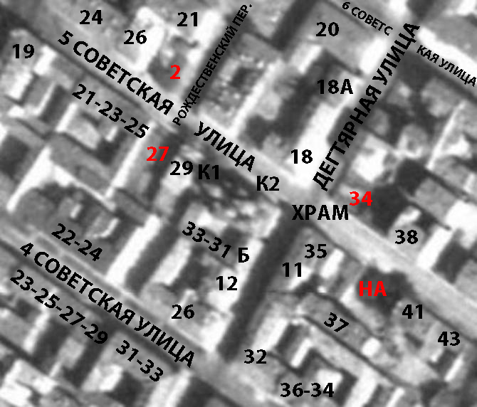 1922: Колхоз Старо-Афонского монастыря - 5-я Рождественская, 33/14 (ВПг на 1922. Стб. 697) 1923: Огородные артели: 16) Старо-афонский Андреевский коллектив, 5-я Рождественская, 33/14, уг. Дегтярной. («Весь Петроград - 1923, С. 251). 1924: Огородная артель "Старо-афонский коллектив" - 5-я Рождественская, 33 ("Спутник по Петрограду...", 1924, С. 58) 1925:Огородная артель «Старо-Афонская», 5 Советская (б. Рождественская), 33. («Весь Ленинград - 1925", С. 186). 1926: Коллектив огородного хозяйства, 5 Советская (б. Рождественская), 33/14. («Весь Ленинград - 1926", С. 180). 2004: "Архив" (пояснит.надпись) (план Треста ГРИИ 2004) 2009: Архив центральный государственный научно-технической документации - 5 Советская ул., 33 (TopPlan 2009) В архиве хранятся дела проектной, конструкторской, научно-исследовательской, картографической документации за 1917-1990 гг. (Добавил: )
