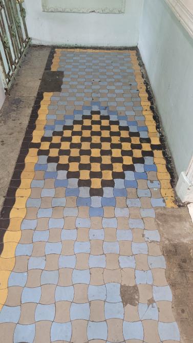 29438 просмотровХочу добавить информацию по поводу архитектурной керамики (возможно, менее интересная, чем архивная инфа). Летом 2023 года удалось зайти в парадную левого здания (если смотреть на фонтан). Фото утраты, где ранее была плитка приложу к этому комментарию. Я обнаружила клеймо фабрики "RAKO". Завод был основан 1883 году в Раковниках (тогда эта область относилась к Австро-Венгрии), и он существует по сей день.