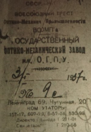1922: Петроградский государственный Оптико-Механический завод - Чугунная. 20 (Весь Петроград 1922 Ст. 719) 1930: Государственный трест оптико-механического производства «ТОМП», Гоз - Государственный Оптический завод - Чугунная ул., 20, ("Весь Ленинград и обл. - 1930". С.422) 1932-1937: Государственный Оптико-механический завод им. ОГПУ (ГОМЗ0 - Чугунная ул., 20 (Весь Ленинград - 1932". С. 171, Весь Ленинград - 1935, С. 78, Ленинград, Список абонентов- 1937, С. 283) 1939, 1940: в Справочниках «Весь Ленинград» ГОМЗ отсутствует, также исчезает и ЛОМЗ (Ленинградский Оптико- механический завод), что, вероятно, обусловлено засекречиванием в связи с приближающейся войной 1965: ПТУ № 46 - Чугунная, 20 ([]. С. 190.) 14 комментариев 23335 просмотровДобавил: Mary, 17 Сентября 2010, 01:10